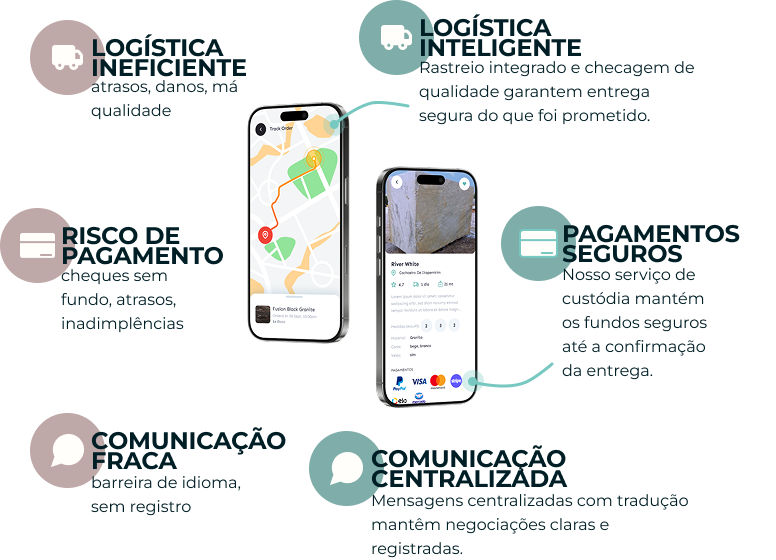 As Pedreira e as Indústrias precisam de uma ferramenta que torne a negociação de pedras mais eficiente, segura e transparente, permitindo que elas reduzam riscos, economizem tempo e aumentem os lucros.